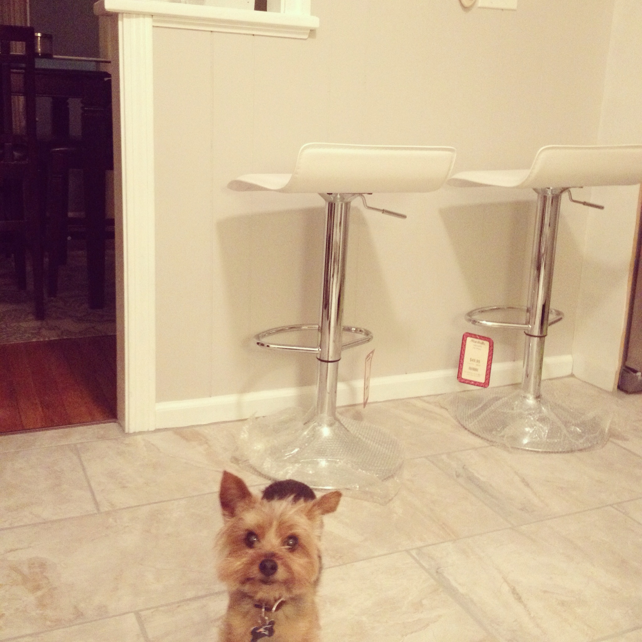 We have been so busy over on Harvard trying to get all the last minute things done in the kitchen. We had a bunch of issues with our cabinets so as of right now, only half of them are installed. The rest are coming in tomorrow and fingers crossed, they’ll all be installed Saturday. Then Monday, the countertops and sink are being installed and we’ll actually have a kitchen again! A month without a kitchen has been trying. We’ve had no sink or stove so all our meals have either been takeout or eating at Chez Dave’s (my parents’ house). After Monday, we’ll still have to do a little more painting and put up the backsplash. Then the fun part comes…decorating! The main colors in the kitchen are all neutrals but I’ll be adding a little bit of “Katie” in there. There will be a big ol’ blog post about our whole kitchen renovation when everything is finished but for now, follow me on Instagram (@stylingharvard) for some sneak peeks. And because I just can’t get enough of these stools, or that little face, here’s a little preview now. Seriously though, how handsome is my littlest man?