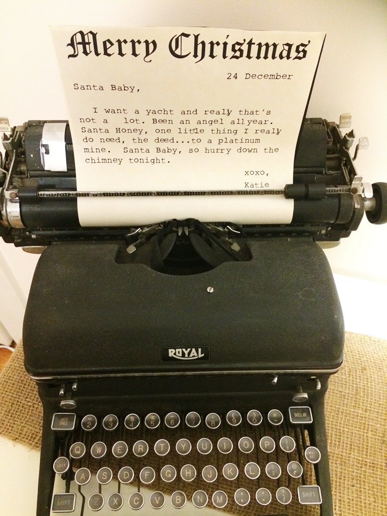 Lastly, I decided my little old typewriter need some Christmas spirit. This belonged to my Gram and is so special to me. I used a typewriter font to type up these Santa Baby lyrics and bada bing, I was good to go!