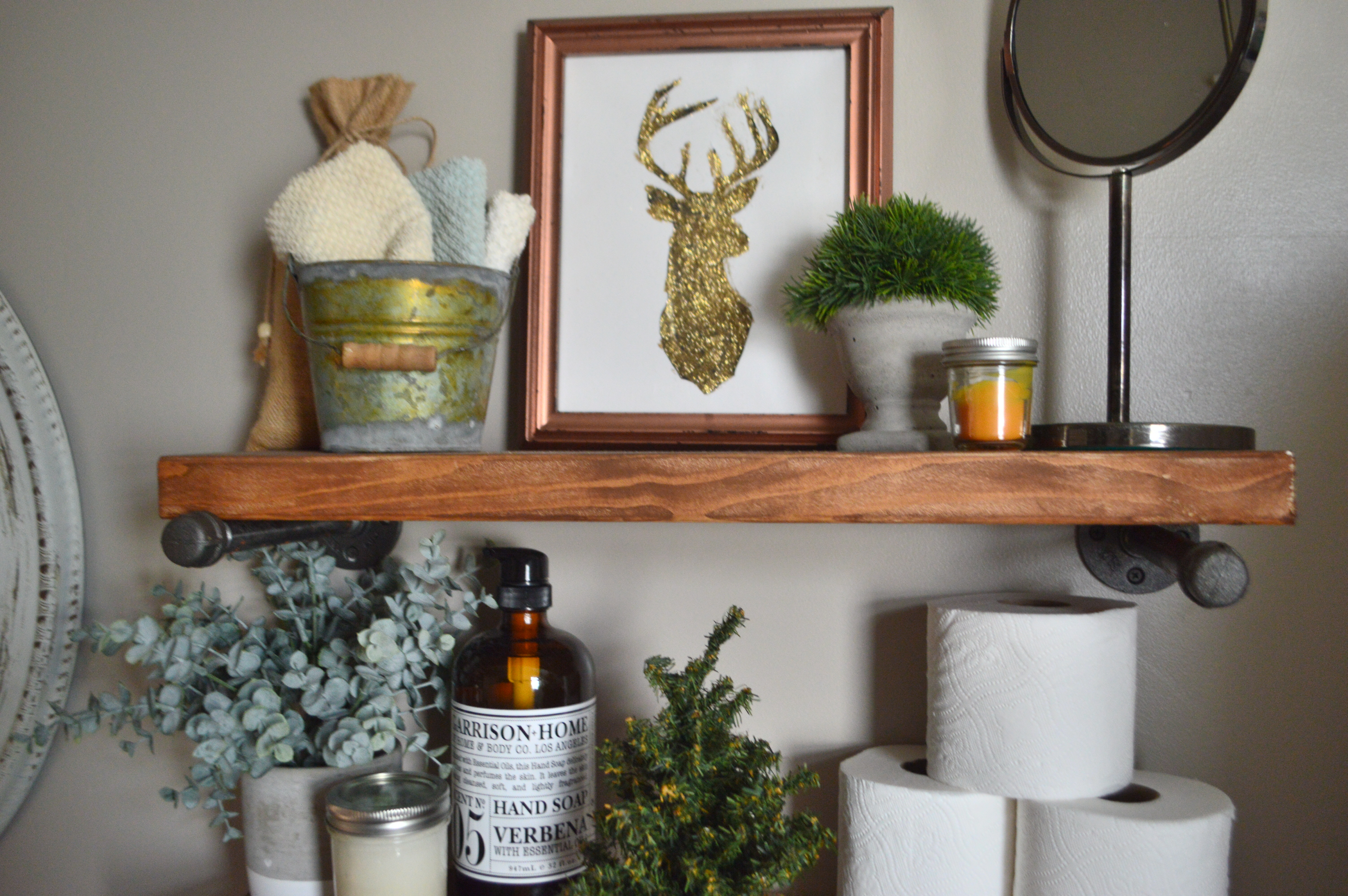Our full bath has touches of winter in it with some trees and a glitter reindeer print I made years ago. Simple but elegant.
