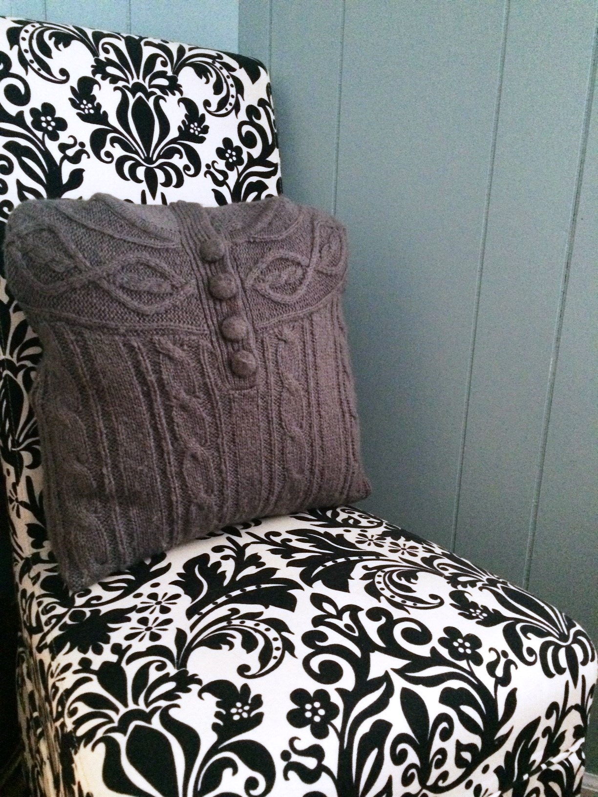 It was a really nice GAP sweater but it was just a little dated. I almost felt bad cutting it up. Almost. Then I saw how cute my pillow came out. I am by no means a sewer, in fact, Jamie just had to teach me. There’s something to be said about public schools and home ec classes. In Catholic school, we swapped sewing for bible study but we were very good at rolling our skirts to make them appear shorter. Sew anyway (see what I did there?!), my husband taught me to do a quick stitch. He’s so handy to have around. I made the beige one for the living room and the grey one for the dining room chair.