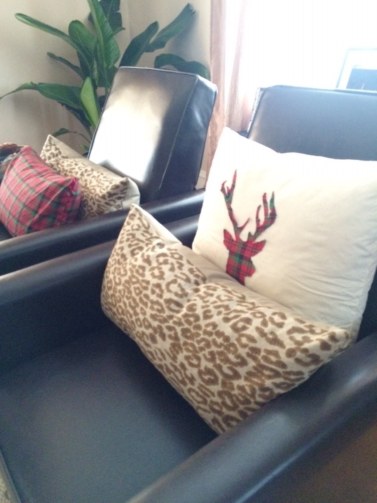 […] notice some subtle hints of leopard mixed in with the plaid. That was all inspired by these pillows. My sister gave me that stuffed reindeer when we were little for Christmas. I’ve always […]