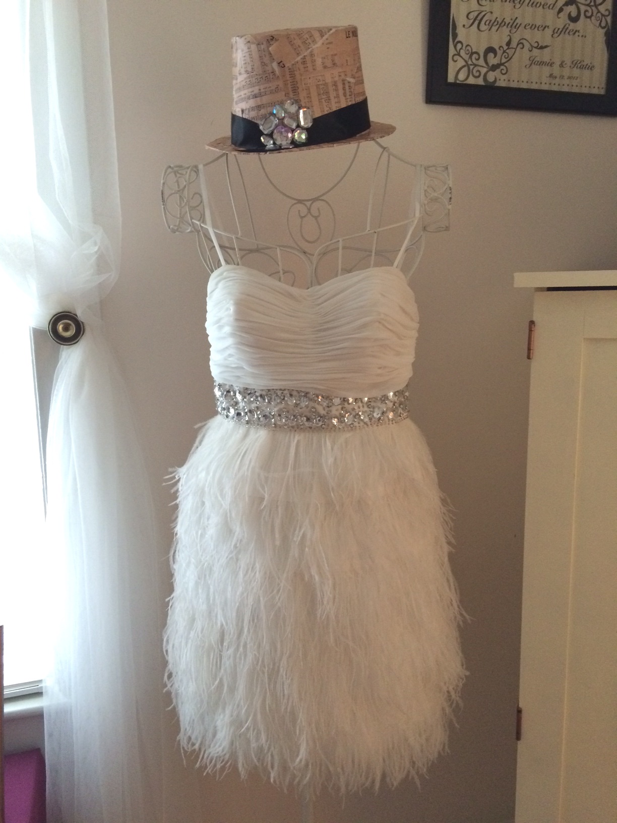 I displayed it on the dress form that holds my reception dress. The weather was terrible the day I took these so my apologies for the poor lighting.