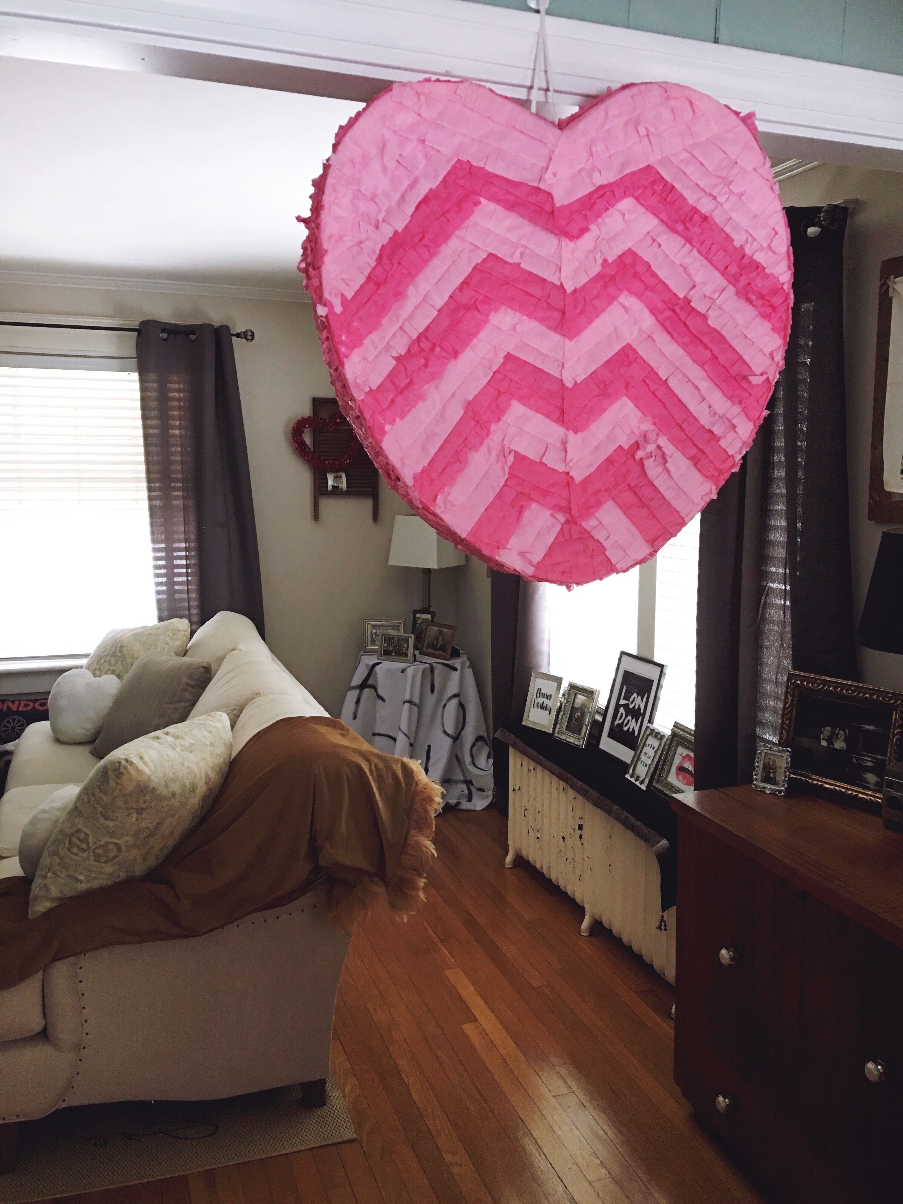 This year was a slightly bigger crowd and I wanted to keep the gift budget down. My sister donated her heart shaped shaped piñata and I filled it with some last year V-day clearance items from Target and nips. Plus, it’s always fun to bash something!