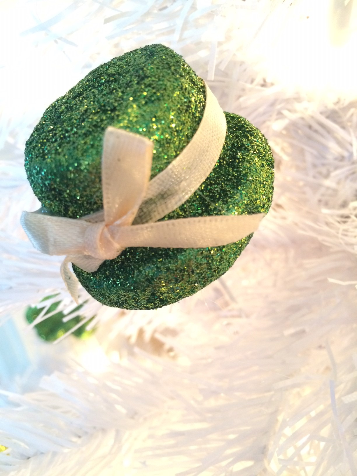 I used green Christmas balls and floral picks that I picked up at the Christmas Tree Shop for $1 a pack. $2 and done! The pot of gold was a score from clearance Halloween a few years ago. I stuffed some gold tissue paper in there and voila! And yes, that was my silver winter tree in the background. I took that down last week because I couldn’t stand looking at it one minute longer, ha!
